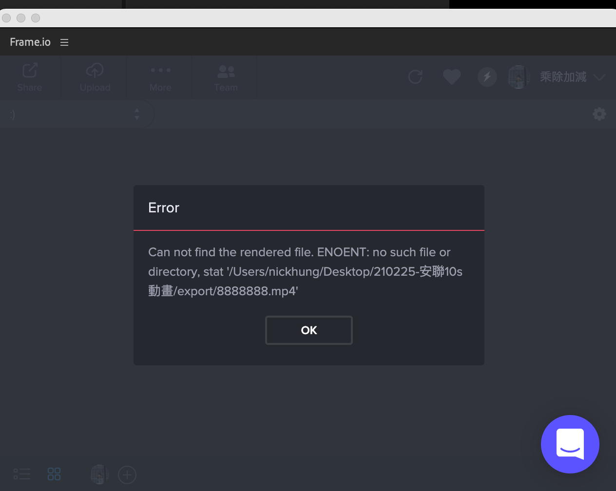 frame.io輸出失敗