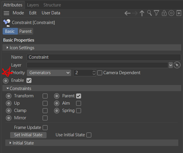 另外假如你不想調整順序,可以更改Priority的內容,眉毛和眼睛的Priority要比Face控制器還要多一號,你的Face設定為1,所以眉毛和眼睛要設定為2,且要改為Generator,我剛檢查這樣就這正常了。如果不清楚也可以進去C4D的Help閱讀說明。